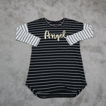 Victorias Secret Womens Angel Sleepshirt Long Sleeve Stripes Black White Size M