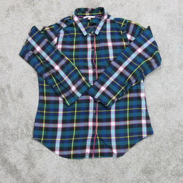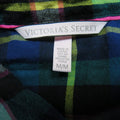 Victorias Secret Womens Button Up Shirt Top Long Sleeve Plaid Check Blue Pink M