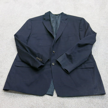 Vintage Mens Blazer Coat Jacket Front Button 100% Wool Pockets Blue Size Large