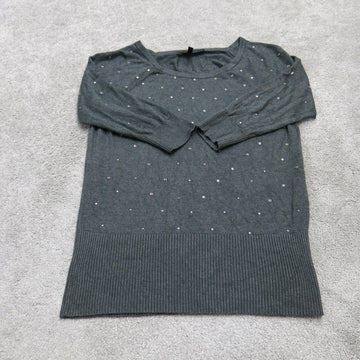 White House Black Market Women Pullover Sweater Long Sleeve Polka Dot Black SZ M