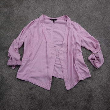 White House Black Market Womens Classic Jacket Coat Pink Roll Up Sleeve Size L