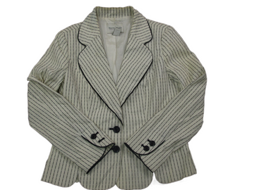 White House Black Market Womens Striped Blazer Coat Long Sleeves Ivory Size 6