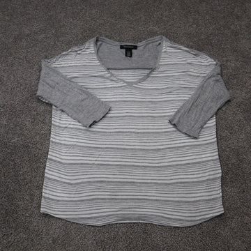 White House Black Market Womens Stripes T-Shirt short Sleeve Gray/White SZ Small