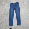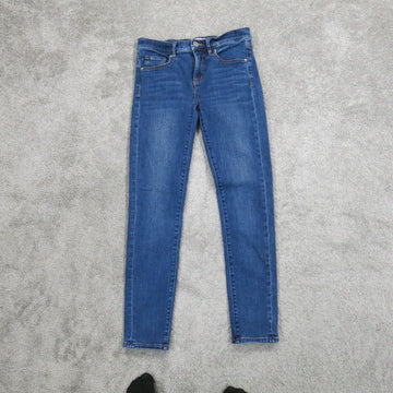 Women Straight Leg Jeans Denim Stretch 5 Pocket Mid Rise Blue Size W24
