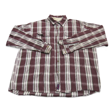 Wrangler Mens Button Up Shirt Plaid Long Sleeve 100% Cotton Brown White SZ Large