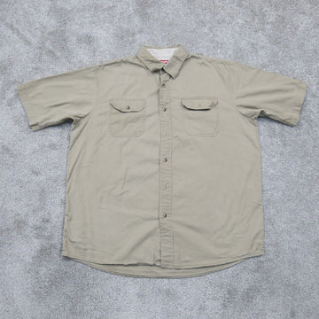 Wrangler Mens Casual Button Up Shirt Short Sleeve 100% Cotton Clay Gray Size L