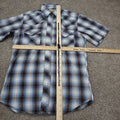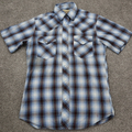 Wrangler Mens Plaid Western Snap Button Up Shirt Short Sleeves Blue White Size S