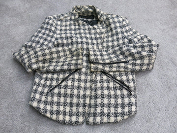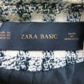 Zara Basic Womens Cropped Blazer Coat Check Long Sleeves Tweed Black White SZ XS