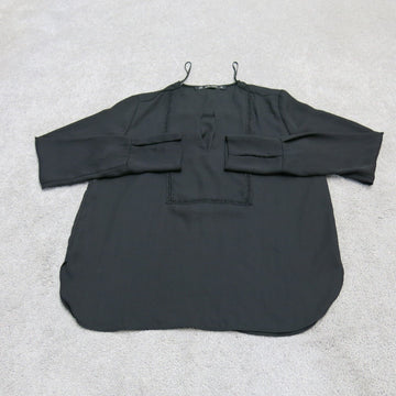 Zara Basic Womens Split Deep V Neck Blouse Top Ribbed Long Sleeves Black Size XS