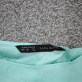 Zara Basics Womens Blouse Top Boat Neck Camo Sleeves Aqua Blue Size Medium