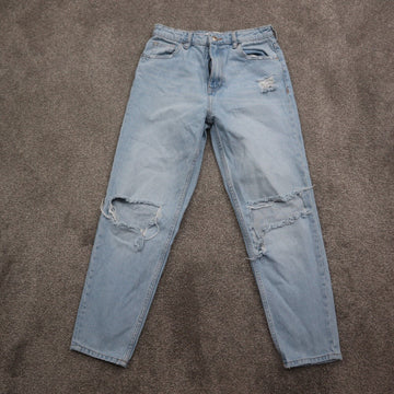 Zara Basics Womens Tapered Leg Distressed Denim Jeans High Rise Light Blue SZ 4