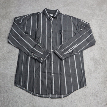 Zara Mens Striped Button Up Shirt Long Sleeves Chest Pocket White Black SZ Small