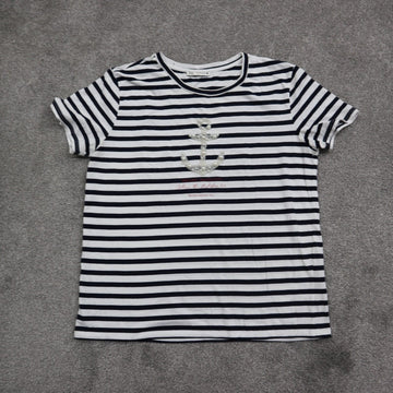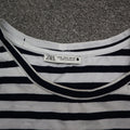 Zara Womens Pullover T Shirt Sequins Short Sleeves Crew Neck Black White Size M